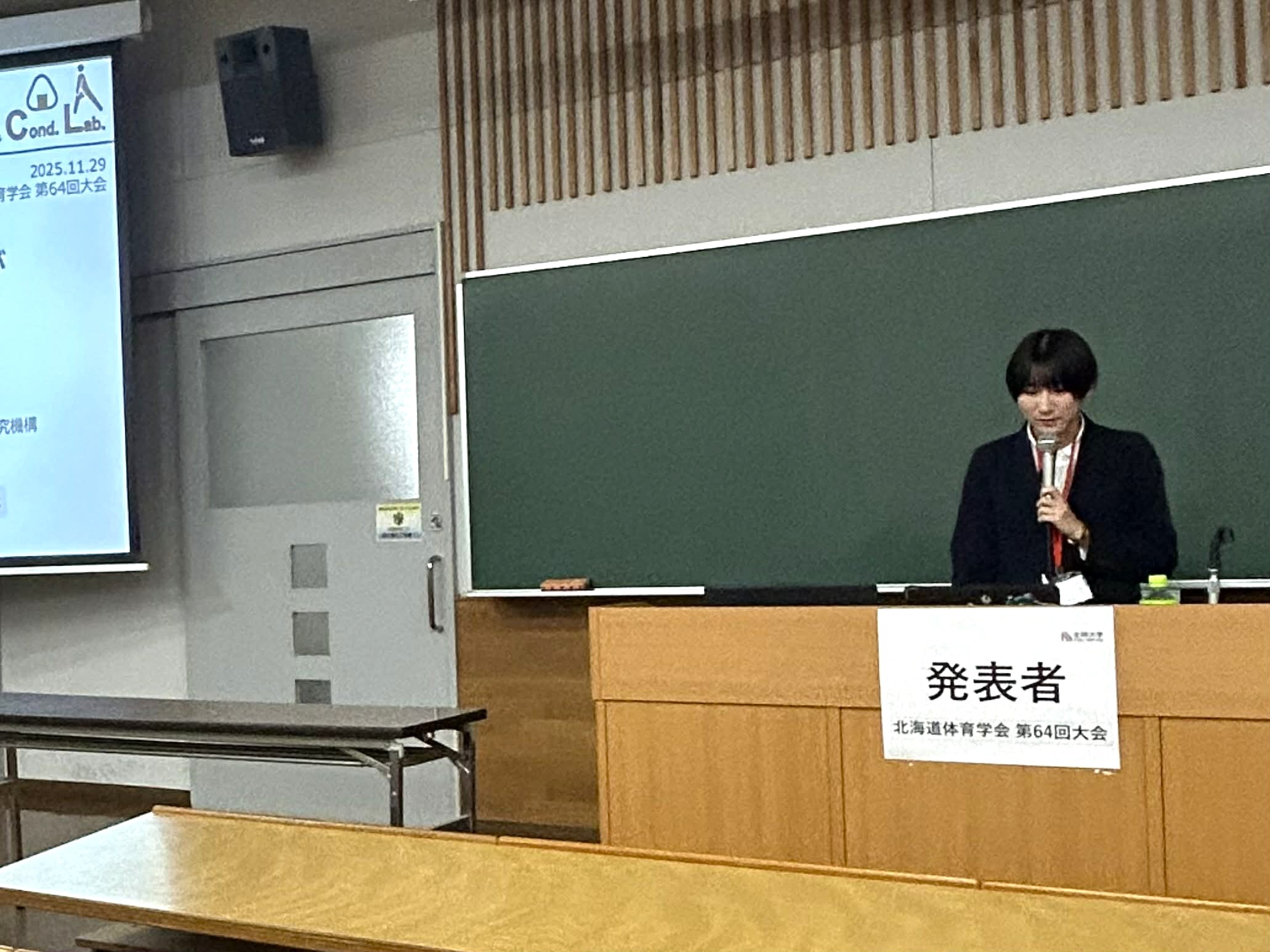 この度は若手研究者賞を賜り、大変光栄に存じます。本研究は2025年度北海道体育学会「研究助成」を受けて実施したものです。選考委員の先生方に心より御礼申し上げます。また、本成果は山口太一先生、柴田啓介先生をはじめとする共同演者の先生方のご指導、ならびに研究室の皆さまや被験者の皆さまの多大なるご協力によって得られたものです。深く感謝申し上げます。今回の受賞を今後の研究活動の新たな出発点と捉え、より意義のある研究を行えるよう研鑽を重ねてまいります。今後ともご指導ご鞭撻のほど、よろしくお願い申し上げます。